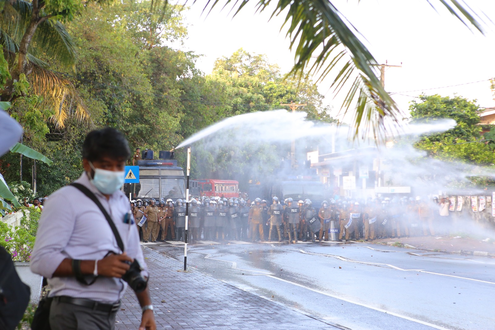 January 17, Colombo (LNW): The Police today (17) utilised water cannons and tear gas to disperse a protest organised by the Inter-University Students’ Federation (IUSF) near the University of Sri Jayawardenapura.