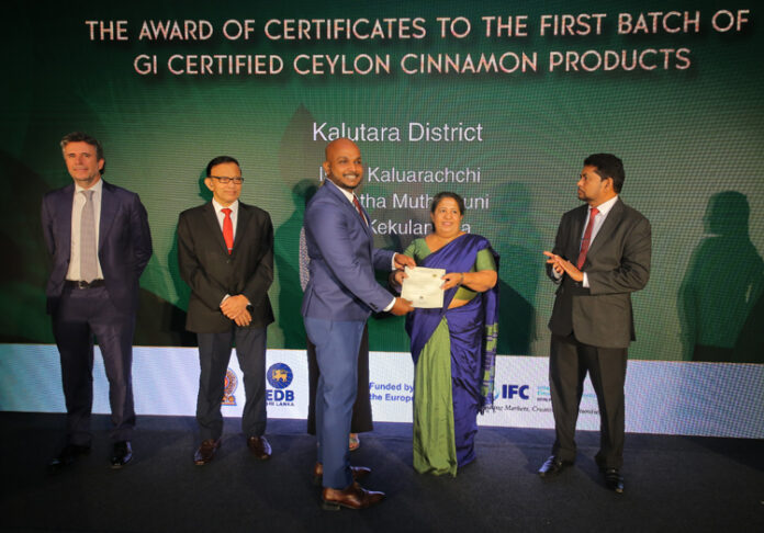 January 18, Colombo (LNW): In an effort to better position and promote high quality exports of Ceylon Cinnamon, the International Finance Corporation (IFC) together with the Ministry of Plantation Industries and Sri Lanka Export Development Board (EDB) recognized the first batch of Geographical Indication (GI) certified Ceylon Cinnamon growers in the country.