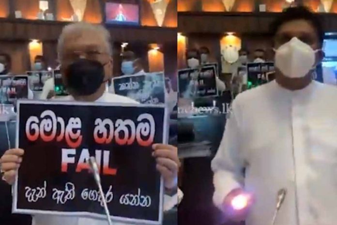 Meanwhile, Ruling Party MPs also expressed their objection stating that the SJB MPs bringing in torches into the Chambers threatens their security. They have complained the matter to the Speaker.