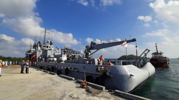 Indian Naval Ship ‘Nireekshak’, which is a highly advanced diving support ship of the Indian Navy, arrived at the port of Trincomalee on 28 February 2022 for facilitating Mixed Gas Diving training for the Sri Lanka Navy.
