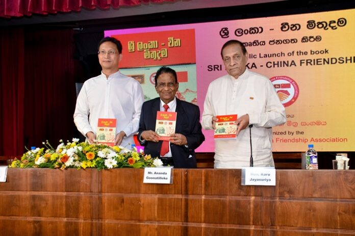 A notable moment of the event was the formal presentation of the first copies of “Sri Lanka Cheena Mithudama” by Goonatilleke to Karu Jayasuriya and Ambassador Qi Zhenhong.