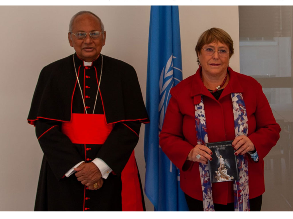 A meeting between His Eminence Malcolm Cardinal Ranjith the Archbishop of Colombo and United Nations Human Rights Commissioner Michelle Bachelet was held at 02.30 pm Sri Lankan time in Geneva today (02).