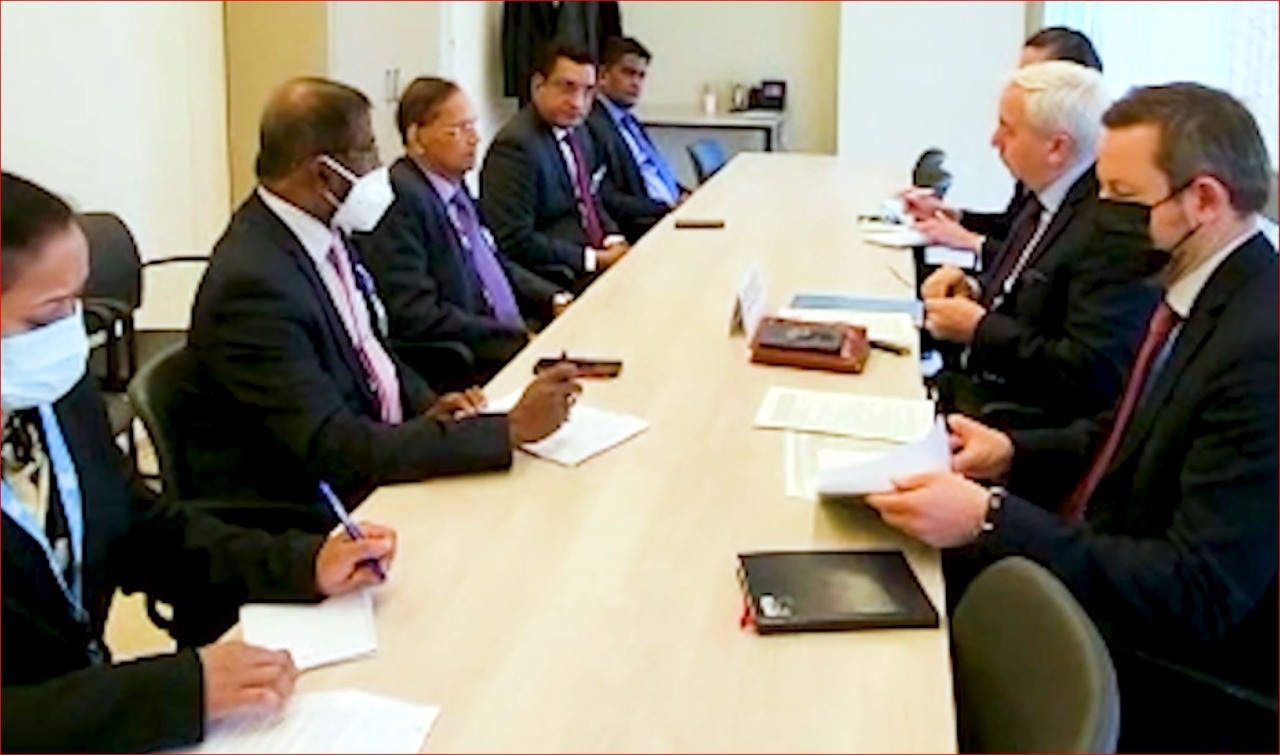 Foreign Affairs Minister Prof. G.L. Peiris held a meeting with President of the Human Rights Council and Permanent Representative of Argentina, Federico Villegas at the Palais des Nations and discussed a range of issues relevant to Sri Lanka on the sidelines of the 49th session of the Human Rights Council in Geneva.