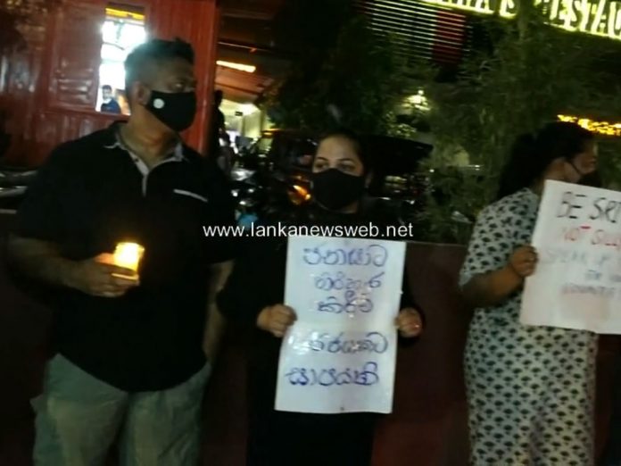 People staged a protest at the centre of Kohuwala city last night against the ongoing power crisis in the country.