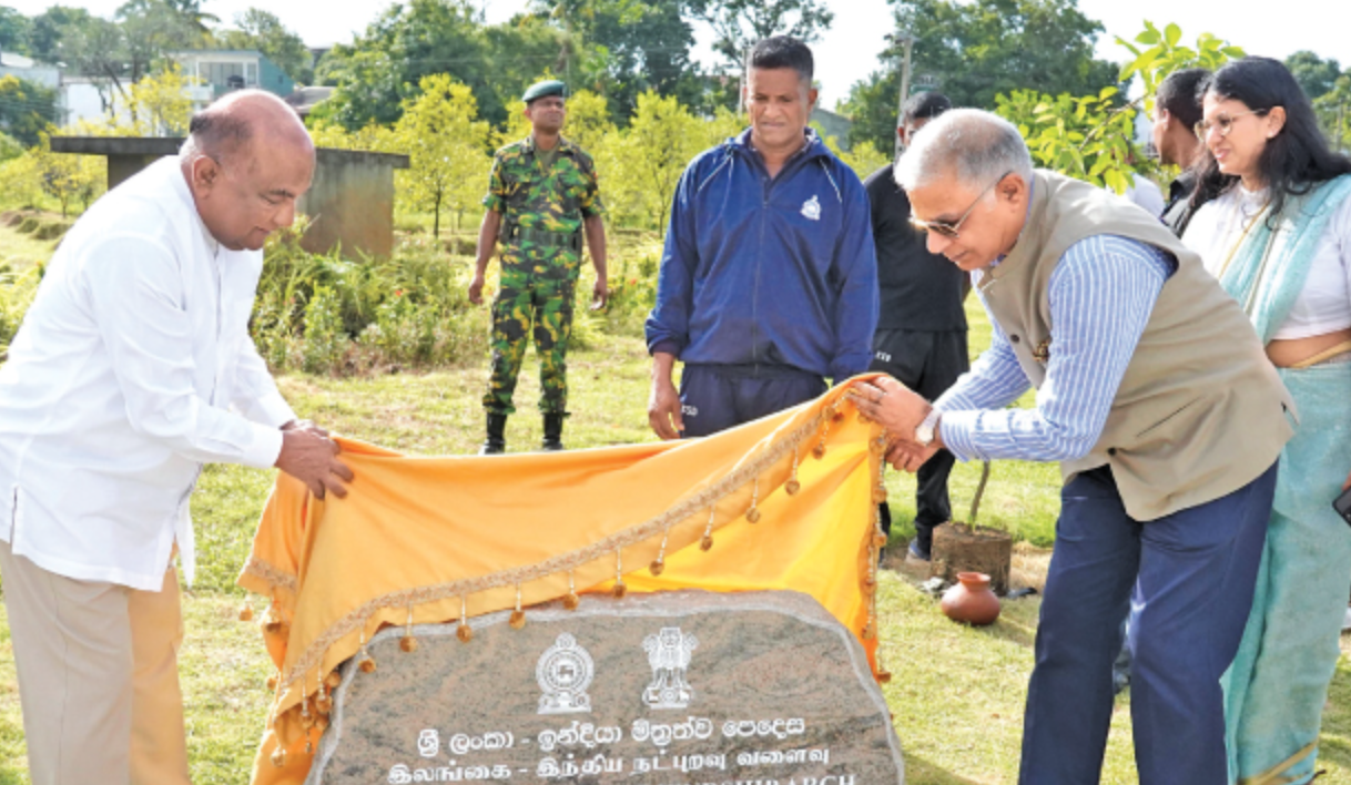 The event began with the unveiling of the arch by Speaker Mahinda Yapa Abeywardana, who served as the chief guest, alongside Indian High Commissioner Santosh Jha. Prominent attendees included Minister Prasanna Ranatunga, and members of the Sri Lanka–India Parliamentary Friendship Association, such as Parliamentarians M.A. Sumanthiran, Dr. V. Radhakrishnan, and Jagath Kumara Sumithraarachchi. They participated in the planting of murutha tree saplings in an arch-shaped tract within the garden.