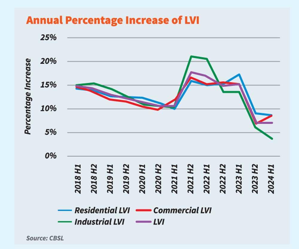 Residential and Commercial LVIs both surged by 8.5 per cent, while the Industrial LVI experienced a more moderate rise of 3.7 per cent.
