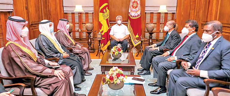 Prince Al Saud was briefed on the impact of the Covid-19 pandemic on the Sri Lankan economy. The President also pointed out the impact of low remittances, the collapse of the tourism industry, the impact of dry weather on hydropower generation and the rising demand for fuel.