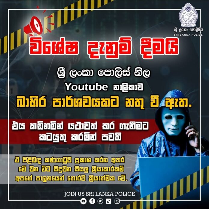 December 31, Colombo (LNW): The official YouTube channel of the Sri Lanka Police has fallen victim to a suspected hacking incident, leaving the platform compromised and inaccessible to the public.