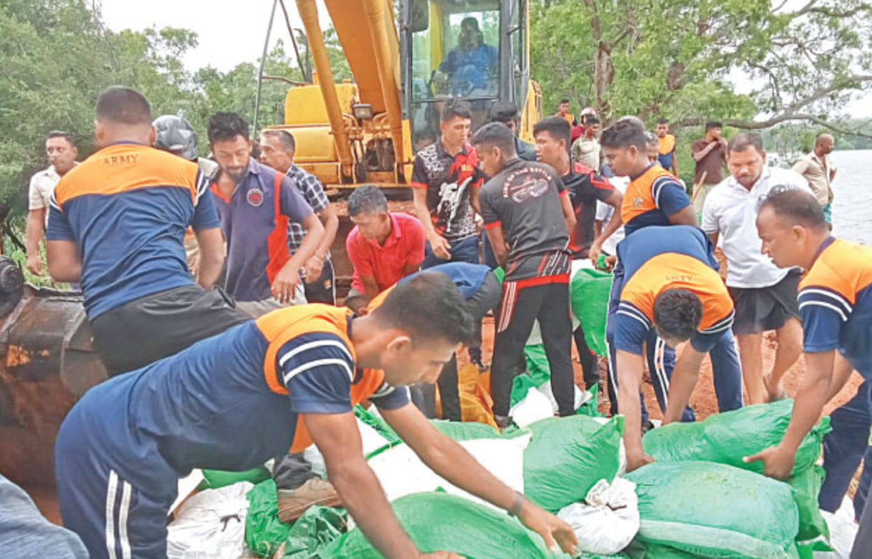 Troops from the Security Forces Headquarters – Wanni acted promptly, fortifying the dam with sandbags to prevent further damage and ensure the protection of residents in the area.