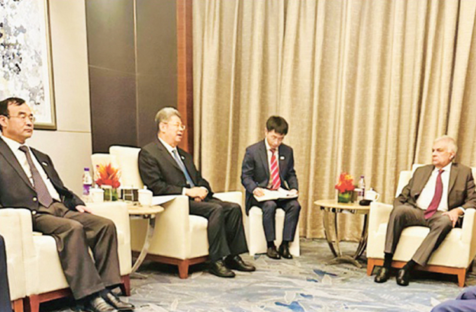 Former President Ranil Wickremesinghe with the Sinopec Group Chairman Ma Yongsheng.