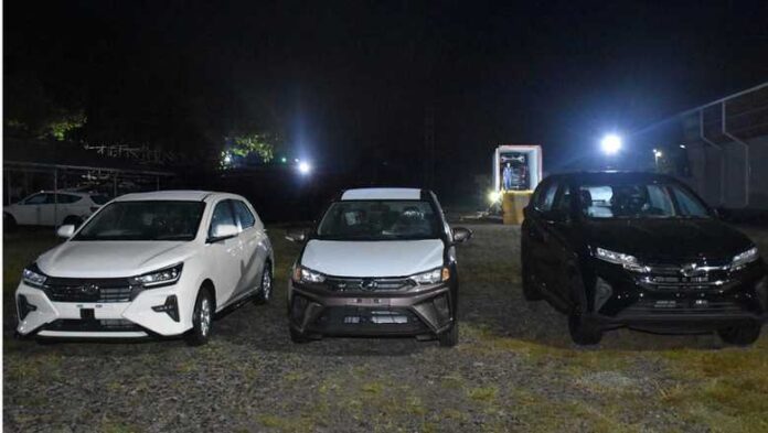 The newly arrived models include the Axia G and Axia SE hatchbacks, the Bezza G sedan, and the Aruz X MPV.