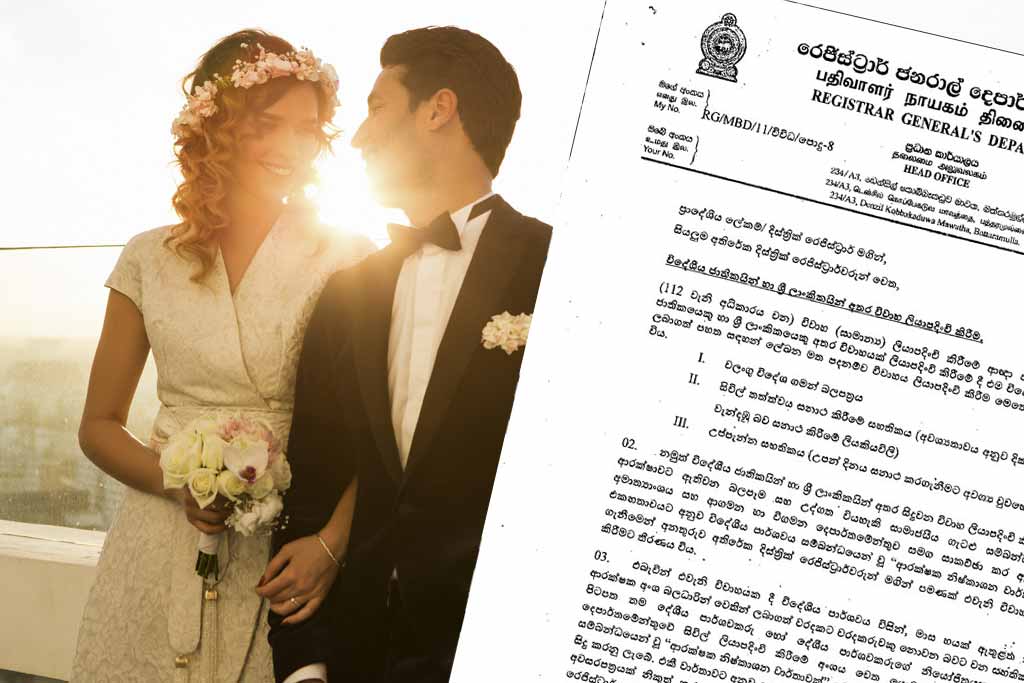 The Registrar General’s Department has issued a circular making it mandatory for Sri Lankans marrying persons of foreign nationality to obtain a ‘security clearance report’ from the Defence Ministry.
