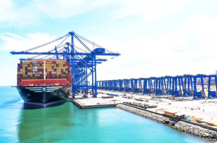 The massive vessel berthed at the Colombo East Container Terminal, highlighting the port’s enhanced capacity to handle ultra-large container ships and reinforcing its strategic role in global shipping routes.
