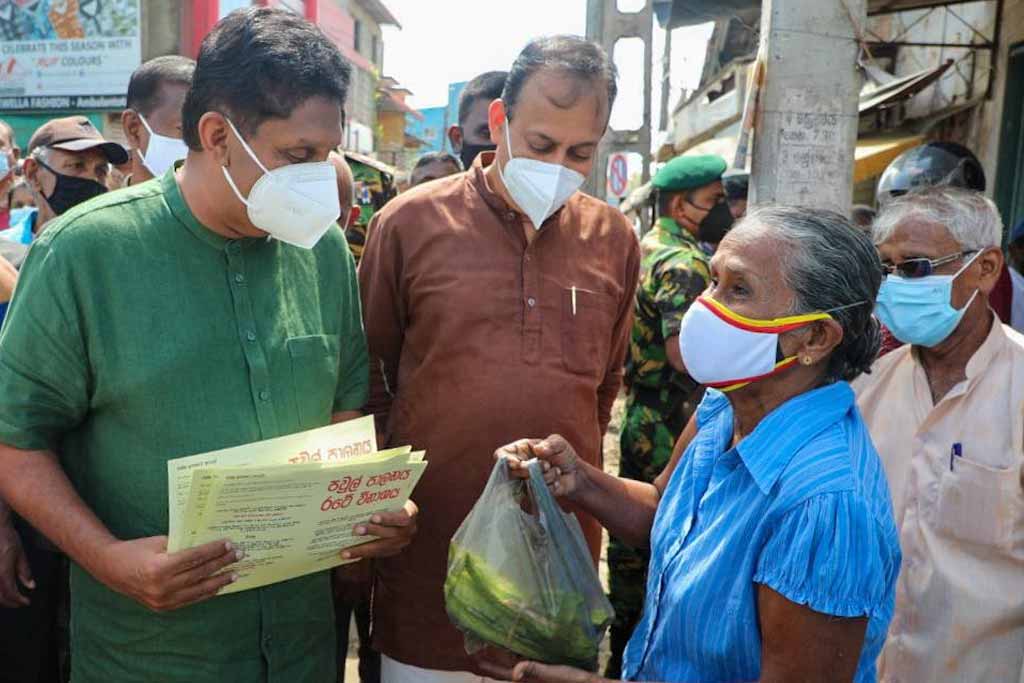 Leader of the Opposition Sajith Premadasa talked to the traders and the town folk and distributed the leaflet distributed mentioning “Family Governance – Destruction of the Country.”