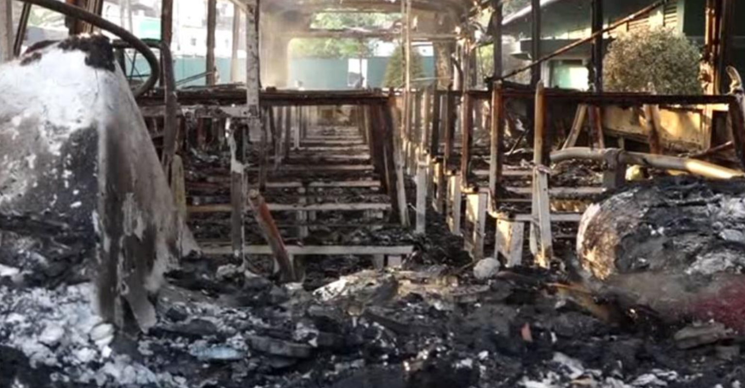 An army bus, a police jeep parked near the protest were set on fire and several other vehicles were damaged.