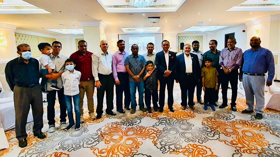 Ambassador of Sri Lanka to the Sultanate of Oman Ameer Ajwad felicitated Namiq Azhar Mohideen one of the most senior members of the Sri Lankan community in Oman who is leaving Oman for Sri Lanka after serving in the Sultanate for almost four decades at a farewell event organized by the Sri Lankan community members living in Muscat at Centara Muscat Hotel in Ghala to recognize Namiq Mohideen’s long service to the Sri Lankan community in Oman. Ambassador Ajwad presented a certificate of appreciation to recognize the long service rendered by Namiq Mohideen to both the home and host countries during the past forty years. Ambassador Ajwad also presented the logo badge issued by the Sri Lanka Embassy in Oman to mark the 40th Anniversary of diplomatic relations between Sri Lanka and the Sultanate of Oman which falls this year.