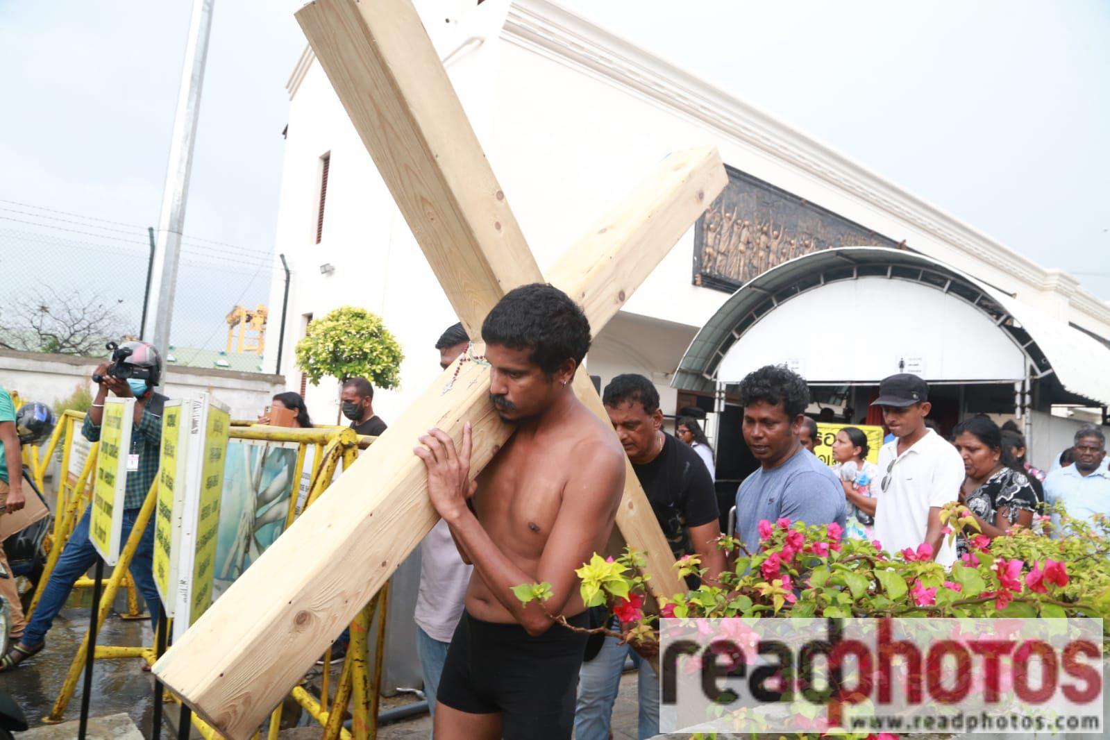 Sri Lanka’s Stage and television actor Jehan Appuhami completed his three-day trek to the president’s offices carrying a life-sized cross on his shoulder, demanding justice for the victims of the 2019 Easter bombings.
