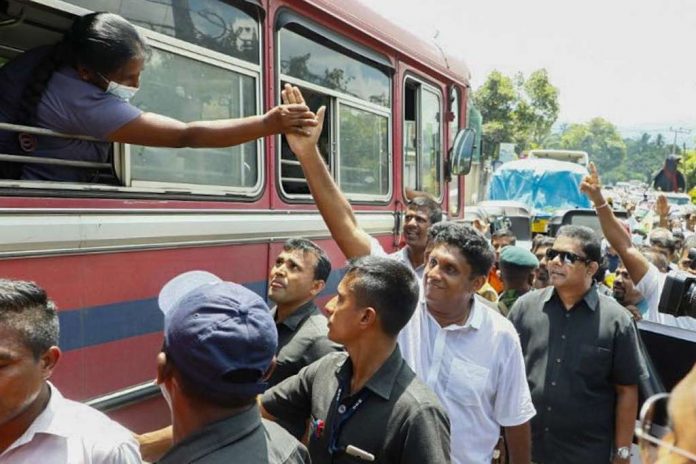 The ‘Samagi Bala Pa Gamana’ walk fighting for freedom organised by the SJB against the oppressive government commenced its second day in Mawanella today. Leader of the Opposition Premadasa together with a large number of public representatives of the SJB are joining the walk.